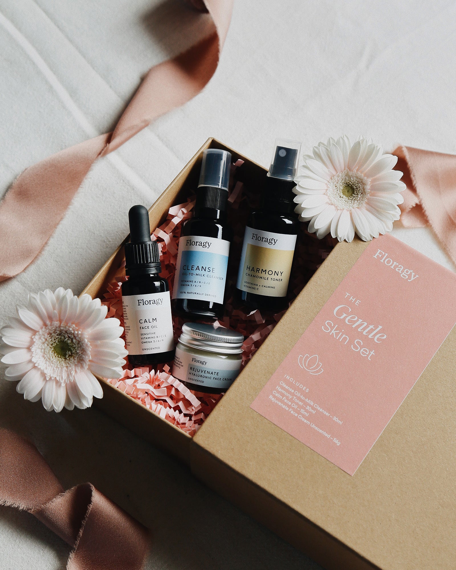 Floragy’s natural skincare products offer gentle, nourishing support for dermatitis-prone skin. Our Gentle Skin Set, featuring Cleanse - Oil to Milk Cleanser, Rejuvenate Face Cream, Calm Face Oil, and Harmony Chamomile Toner, provides hydration and calming properties. Chamomile is particularly soothing for inflamed skin, helping to reduce redness and discomfort.