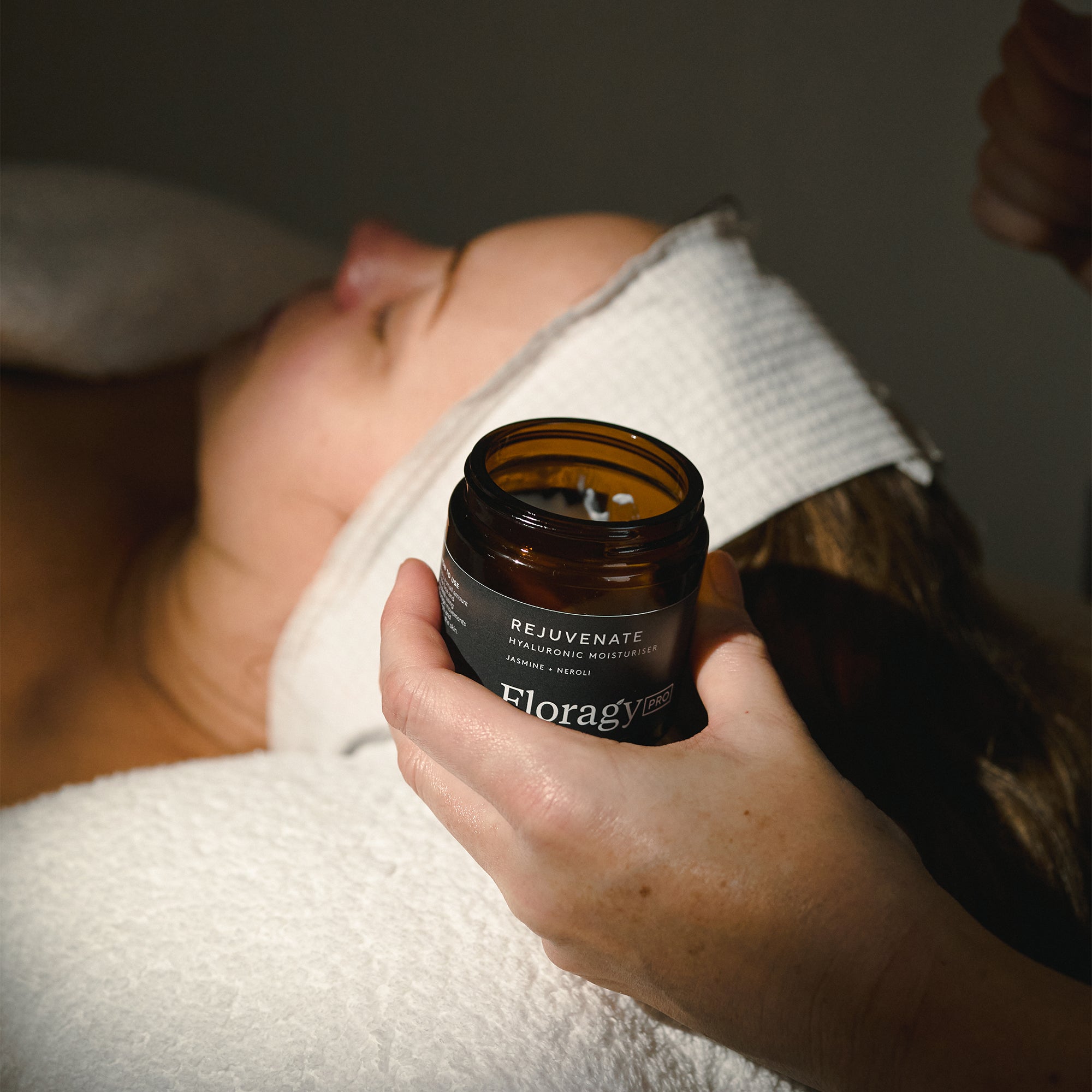 Apply to the client’s face and décolletage using a mask brush or spatula. Cover the clients eyes with moist cotton pads and a quartz eye mask to create a restful experience and aid lymphatic drainage.