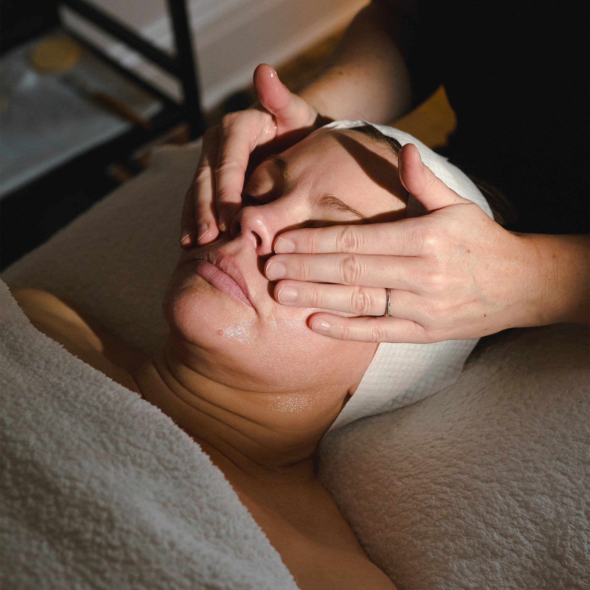 Apply two to three pumps into palms and apply to the client’s face and décolletage. Sweep over the skin using effleurage movements ensuring all areas are covered.